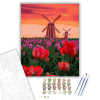 Hollandia - számfestő készlet – 40×50 cm (Keretre feszítve) A festmény meleg, nosztalgikus hangulatot áraszt, amely egy békés tavaszi délutánra emlékeztet. A szélmalmok és a tulipánok harmóniája egy régmúlt történetet mesél el, ahol a természet és az embe