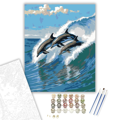 1 kép Számfestő.hu Hullámokon Lovagló Delfinek - számfestő készlet – 40×50 cm (Keretre feszítve)