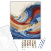 Hullámzó Színek és Textúrák - számfestő készlet – 40×50 cm (Keretre feszítve) A festmény egy dinamikus hullámot ábrázol, mely rétegzett színekben pompázik. A kompozícióban a kék, vörös és arany árnyalatok dominálnak, intenzív és mozgalmas hangulatot terem