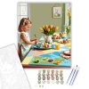 Húsvéti Reggel Festett Tojásokkal - számfestő készlet – 40×50 cm (Keretre feszítve) A festmény egy kisgyermeket ábrázol, aki éppen tojásokat fest a reggelizőasztalon. A jelenet élénk színekkel van megfestve, különösen a színes tojások és a vázában lévő tu