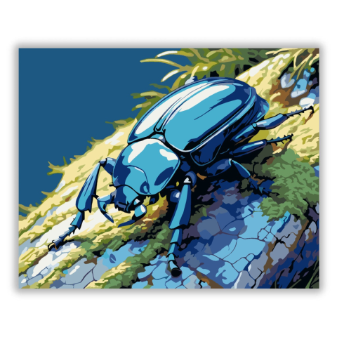 1 kép Számfestő.hu Irideszkáló Kék Bogár Mohás Kövön - számfestő készlet