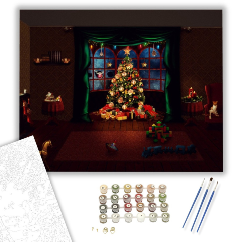Karácsony éjjel- számfestő készlet – 40×50 cm (Keretre feszítve) Készíts gyönyörű műalkotásokat, előzetes festő tudás nélkül! Éld át az alkotás gyönyörű pillanatait és varázslatos hangulatát! Akkor is gyönyörű festményeket hozhatsz létre, ha még nem feste