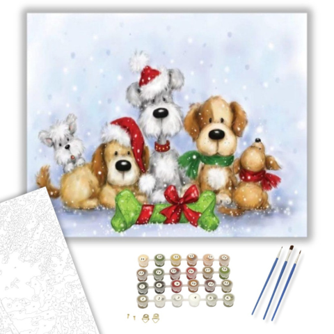 1 kép Számfestő.hu Karácsonyi Kutyák - számfestő készlet – 40×50 cm (Keretre feszítve)