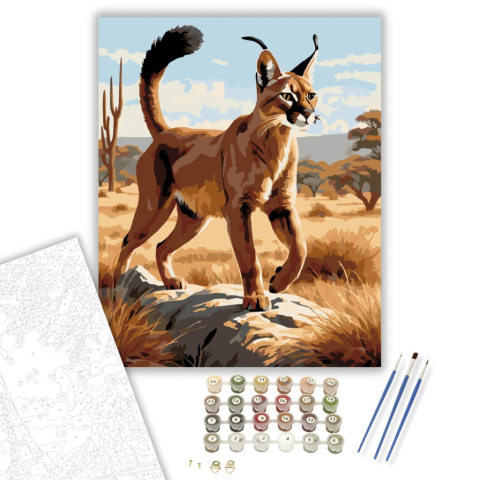 1 kép Számfestő.hu Karakal a Szavannán - számfestő készlet – 40×50 cm (Keretre feszítve)