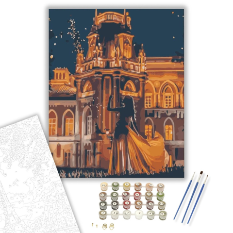 Kastély este - számfestő készlet – 40×50 cm (Keretre feszítve) Készíts gyönyörű műalkotásokat, előzetes festő tudás nélkül! Éld át az alkotás gyönyörű pillanatait és varázslatos hangulatát! Akkor is gyönyörű festményeket hozhatsz létre, ha még nem festett