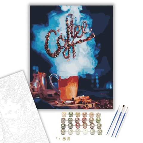 Kávé - számfestő készlet – 40×50 cm (Keretre feszítve) Készíts gyönyörű műalkotásokat, előzetes festő tudás nélkül! Éld át az alkotás gyönyörű pillanatait és varázslatos hangulatát! Akkor is gyönyörű festményeket hozhatsz létre, ha még nem festettél vászo