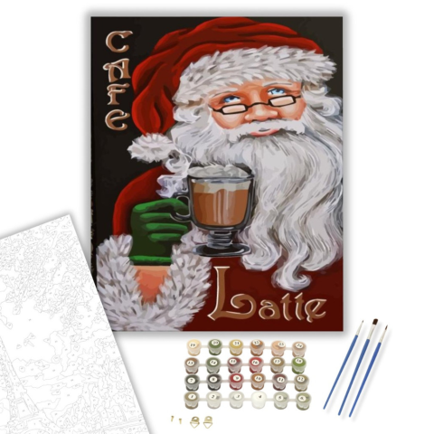 1 kép Számfestő.hu Kávézó télapó - számfestő készlet – 40×50 cm (Keretre feszítve)