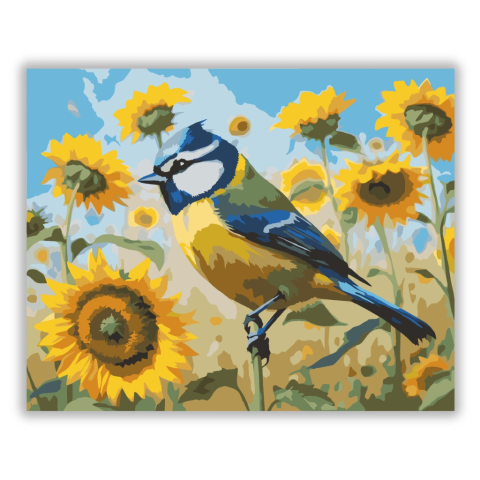 1 kép Számfestő.hu Kék Cinege a Napraforgók Között - számfestő készlet