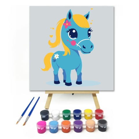 1 kép Számfestő.hu Kék kicsi póni - gyerek számfestő készlet – 20×20 cm (Keretre feszítve)