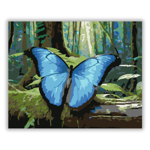 1 kép Számfestő.hu Kék Morpho Pillangó Erdőben - számfestő készlet