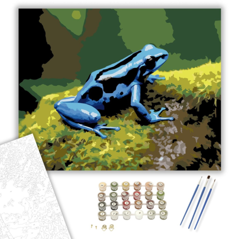 1 kép Számfestő.hu Kék Nyílméregbéka Mohás Kövön - számfestő készlet – 40×50 cm (Keretre feszítve)