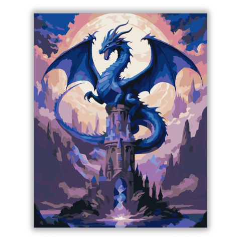 1 kép Számfestő.hu Kék Sárkány a Kristálytorony Körül - számfestő készlet