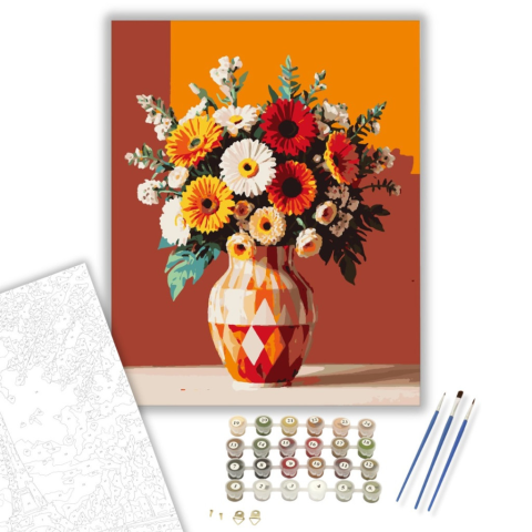 Kertész álma - számfestő készlet – 40×50 cm (Keretre feszítve) Ez a festmény melegséget és örömöt sugároz, mintha egy napfényes délután emlékét idézné. Egy történetet mesél el egy csendes szobáról, ahol a virágok tánca életre kel. A gazdag narancs és piro
