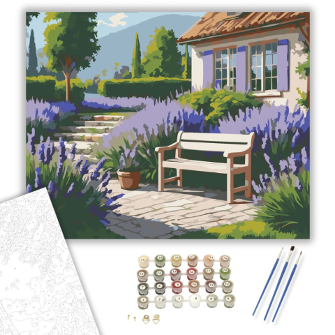 1 kép Számfestő.hu Kerti Levendulák és Pad - számfestő készlet – 40×50 cm (Keretre feszítve)