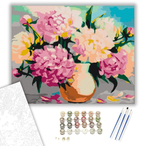 Kerti Virágok - számfestő készlet – 40×50 cm (Keretre feszítve) A festmény vidám és megnyugtató hangulatot áraszt, mintha a természet színeit zárná egy vázába. Egy elbűvölő történet bontakozik ki a virágok között, ahol minden színfolt egy újabb fejezetet