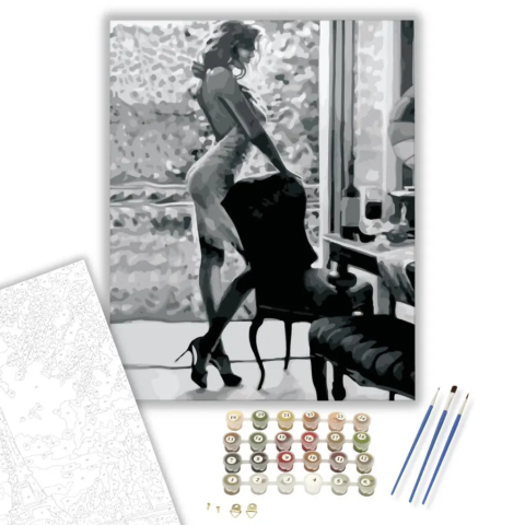 Készülödő hölgy - számfestő készlet – 80×100 cm (Keretre feszítve) Készíts gyönyörű műalkotásokat, előzetes festő tudás nélkül! Éld át az alkotás gyönyörű pillanatait és varázslatos hangulatát! Akkor is gyönyörű festményeket hozhatsz létre, ha még nem fes