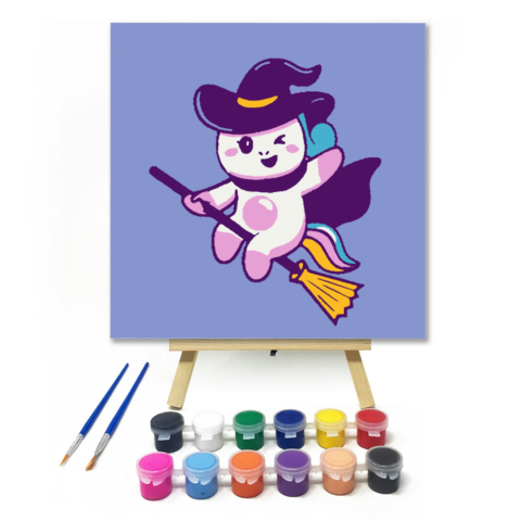 1 kép Számfestő.hu Kis Boszorkány - gyerek számfestő készlet – 20×20 cm (Keretre feszítve)