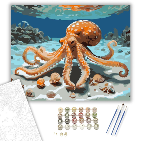 1 kép Számfestő.hu Kíváncsi Polip és Kagylók - számfestő készlet – 40×50 cm (Keretre feszítve)