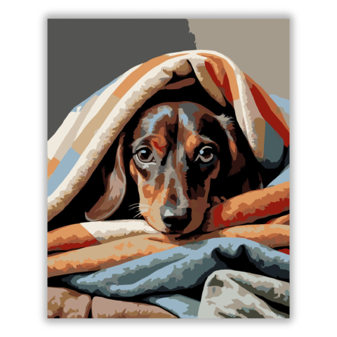 1 kép Számfestő.hu Kíváncsi Tacskó a Takarók Között - számfestő készlet