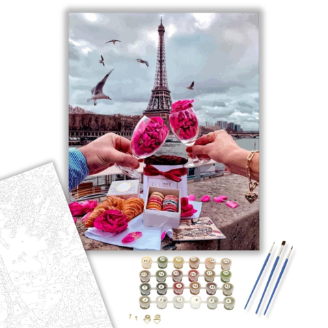 1 kép Számfestő.hu Koccintás Párizsban - számfestő készlet – 40×50 cm (Keretre feszítve)