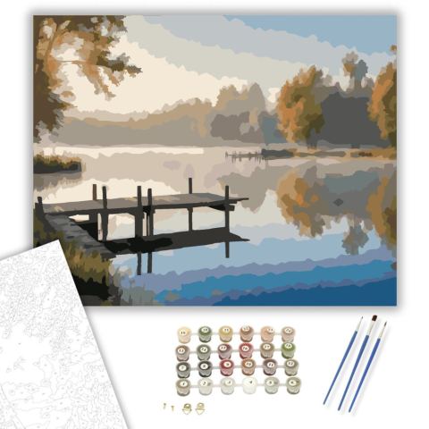 1 kép Számfestő.hu Ködös Reggel a Halastónál - számfestő készlet – 40×50 cm (Keretre feszítve)