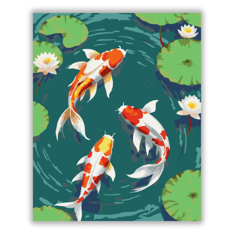 1 kép Számfestő.hu Koi Halak és Lótuszvirágok - számfestő készlet