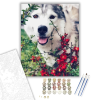 Kukucs - számfestő készlet – 40×50 cm (Keretre feszítve) Ez a festmény egy vidám és szeretetteljes pillanatot örökít meg, amely azonnal mosolyt csal az arcodra. A kép középpontjában egy kíváncsi kutya tekintete áll, aki mintha épp felfedezőútra indulna a