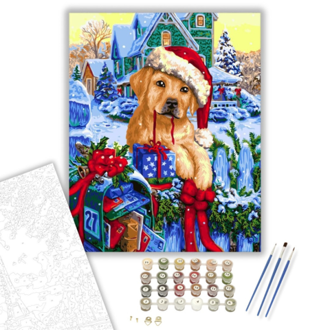 1 kép Számfestő.hu Kutya ajándékokkal - számfestő készlet – 40×50 cm (Keretre feszítve)