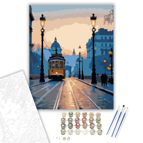 1 kép Számfestő.hu Lánchíd Alkonyati Villamos - számfestő készlet – 40×50 cm (Keretre feszítve)