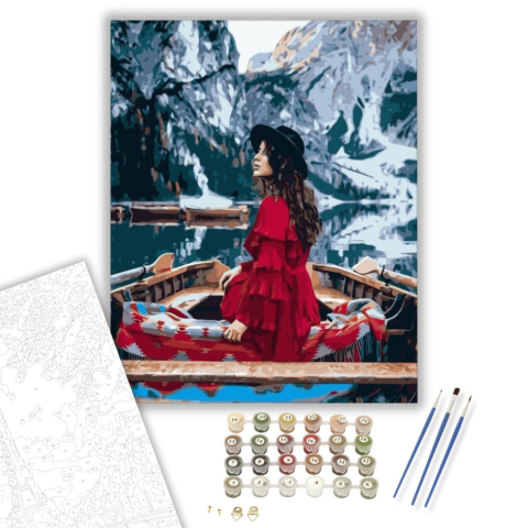 Lány piros ruhában - számfestő készlet – 40×50 cm (Keretre feszítve) Készíts gyönyörű műalkotásokat, előzetes festő tudás nélkül! Éld át az alkotás gyönyörű pillanatait és varázslatos hangulatát! Akkor is gyönyörű festményeket hozhatsz létre, ha még nem f