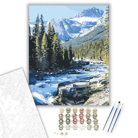 Látkép - számfestő készlet – 40×50 cm (Keretre feszítve) A festmény megnyugtató csendjével hívogat, mintha a természet ölelésében találnánk menedéket. Egy eldugott völgy történetét meséli el, ahol a kristálytiszta patakok szelíd dallamot játszanak. A hűvö