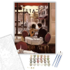 Légyott - számfestő készlet – 40×50 cm (Keretre feszítve) A festmény egy romantikus, nosztalgikus hangulatot áraszt, amely magával ragadja a nézőt. Egy kávéházi jelenet bontakozik ki, ahol két ember osztozik egy meghitt pillanaton. A meleg színek és lágy