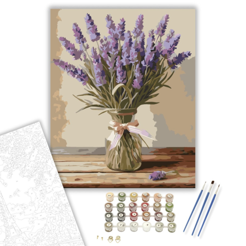 1 kép Számfestő.hu Levendulacsokor Rusztikus Asztalon - számfestő készlet – 40×50 cm (Keretre feszítve)