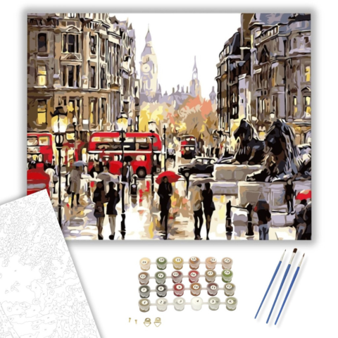 London Belvárosa - számfestő készlet – 40×50 cm (Keretre feszítve) Készíts gyönyörű műalkotásokat, előzetes festő tudás nélkül! Éld át az alkotás gyönyörű pillanatait és varázslatos hangulatát! Akkor is gyönyörű festményeket hozhatsz létre, ha még nem fes