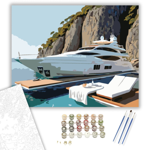 1 kép Számfestő.hu Luxusjacht a Sziklás Öbölben - számfestő készlet – 40×50 cm (Keretre feszítve)
