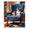 Macska és Téli Melegség - számfestő készlet – 40×50 cm (Keret nélkül) Egy kényelmes kék fotel ölelésében, egy gyönyörű cirmos macska pihen békésen, míg a háttérben a kandalló lángjai táncolnak. A karácsonyfa színes gömbjei ragyogó fényekkel töltik meg a s