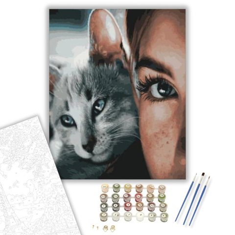 1 kép Számfestő.hu Macska szeretet - számfestő készlet – 40×50 cm (Keretre feszítve)
