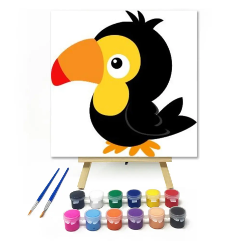 Madárka - gyerek számfestő készlet – 40×40 cm (Keret nélkül) Ez a kép egy bájos kis madárkát ábrázol, aki vidáman üldögél a vásznon. A színes festékekkel életre kelthetitek ezt a kedves tollas barátot! Tökéletes kaland a gyerekek első festős élményéhez!