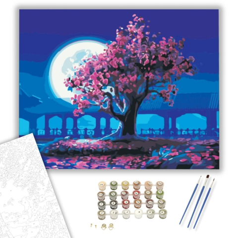 1 kép    Számfestő.hu Magányos Fa a Teliholdnál - számfestő készlet – 40×50 cm (Keretre feszítve)