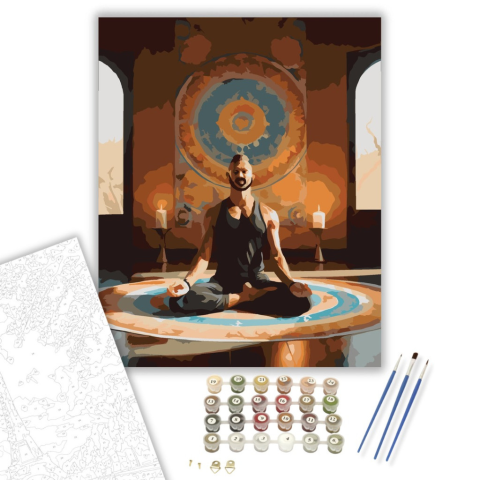 1 kép Számfestő.hu Meditáló Férfi Mandalával - számfestő készlet – 40×50 cm (Keretre feszítve)