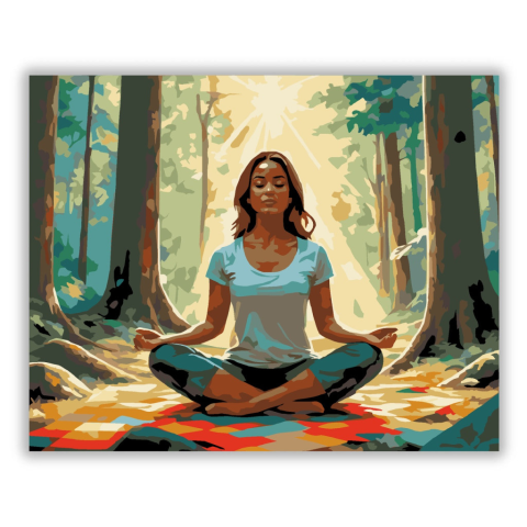 1 kép Számfestő.hu Meditáló Nő Erdőben Napfényben - számfestő készlet