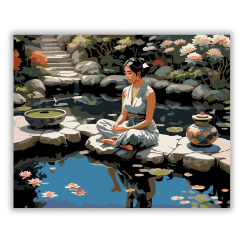 1 kép Számfestő.hu Meditáló Nő Koi Tó Partján - számfestő készlet