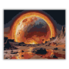 Merkúr Felszín és Forró Nap - számfestő készlet – 40×50 cm (Keret nélkül) A festmény a Merkúr bolygó izzó felszínét ábrázolja mély kráterekkel és a nap hevétől remegő légkörrel. Az élénk narancssárga és vörös árnyalatok a bolygó forróságát és a nap intenz