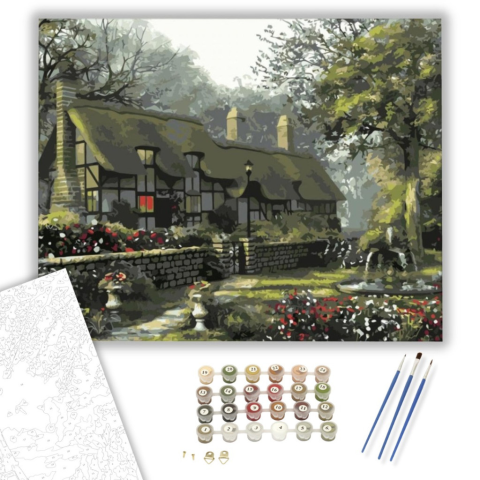 Mesés ház - számfestő készlet – 40×50 cm (Keretre feszítve) A festmény egy mesebeli tájra kalauzol, ahol a békés csendet csak a természet hangjai törik meg. A képen egy történet bontakozik ki, ahol a múlt és a jelen találkozik egy idilli házikó körül. A z
