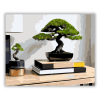 Modern Bonsai a Fa Asztalon - számfestő készlet – 40×50 cm (Keret nélkül) A festmény egy modern nappaliban elhelyezett kis fenyő bonsai fát ábrázol, amely elegánsan pihen egy fekete kerámia edényben a fa asztalon, művészeti könyvek mellett. A kompozíció l
