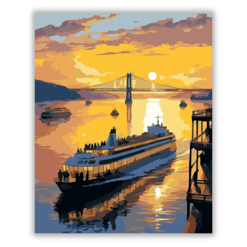 1 kép Számfestő.hu Modern Komphajó Naplementében - számfestő készlet