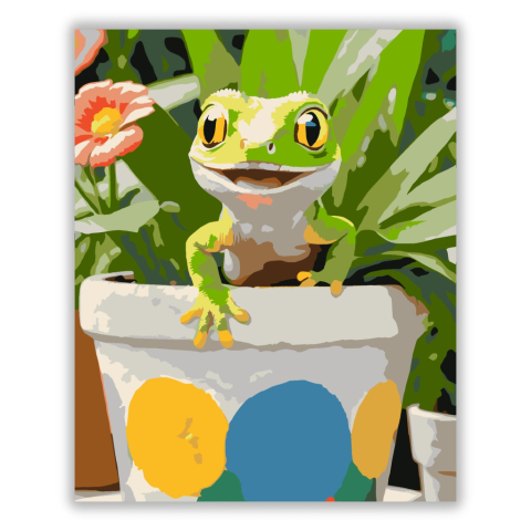 1 kép Számfestő.hu Mosolygó Gekkó Virágcserépben - számfestő készlet