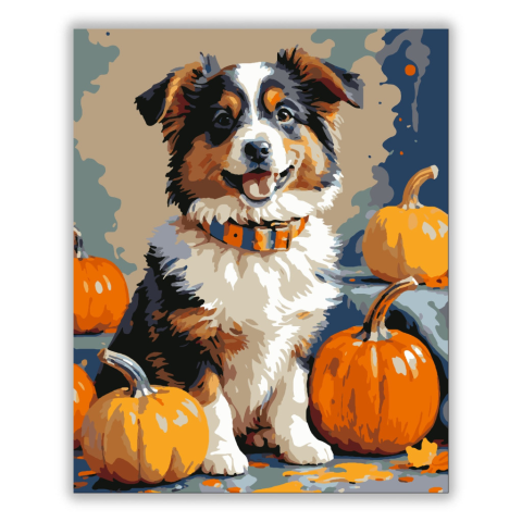 1 kép Számfestő.hu Mosolygó kiskutya tökökkel - számfestő készlet