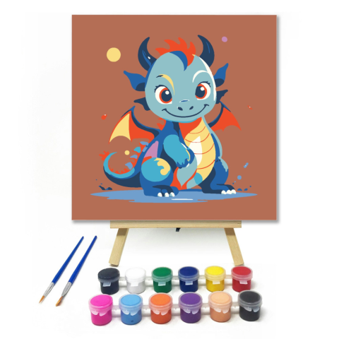 1 kép Számfestő.hu Mosolygó sárkány - gyerek számfestő készlet – 20×20 cm (Keretre feszítve)