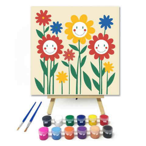 1 kép Számfestő.hu Mosolygó virágok - gyerek számfestő készlet – 20×20 cm (Keretre feszítve)